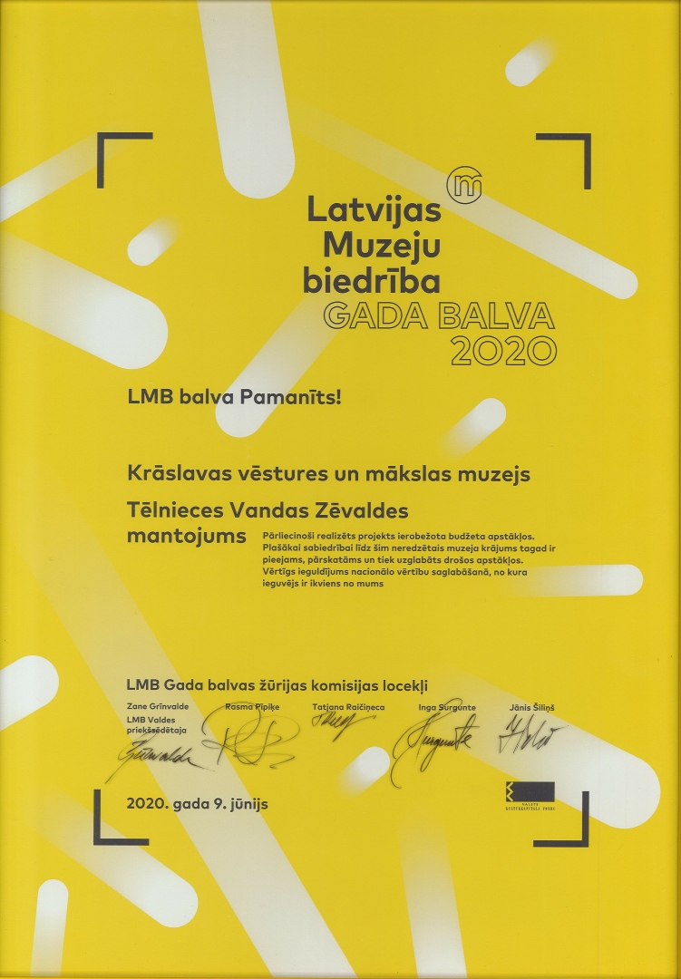 Foto: Krāslavas Vēstures un mākslas muzejs saņēmis Latvijas Muzeju biedrības gada balvu!